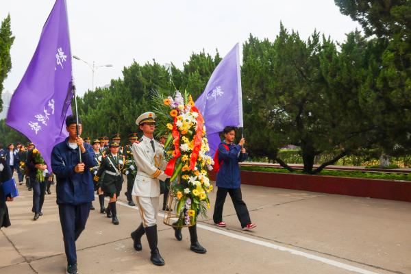 脱帽低头默哀,以寄哀思 佩戴自己制作的白花依次献花 团委书记李晓培擦拭焦裕禄烈士墓碑 2217班团员学生孙浩然带领全体学生宣誓 学生及群众听老师讲解烈士事迹 学生认真听老师阐释革命精神的时代内涵 合影留念 青山...