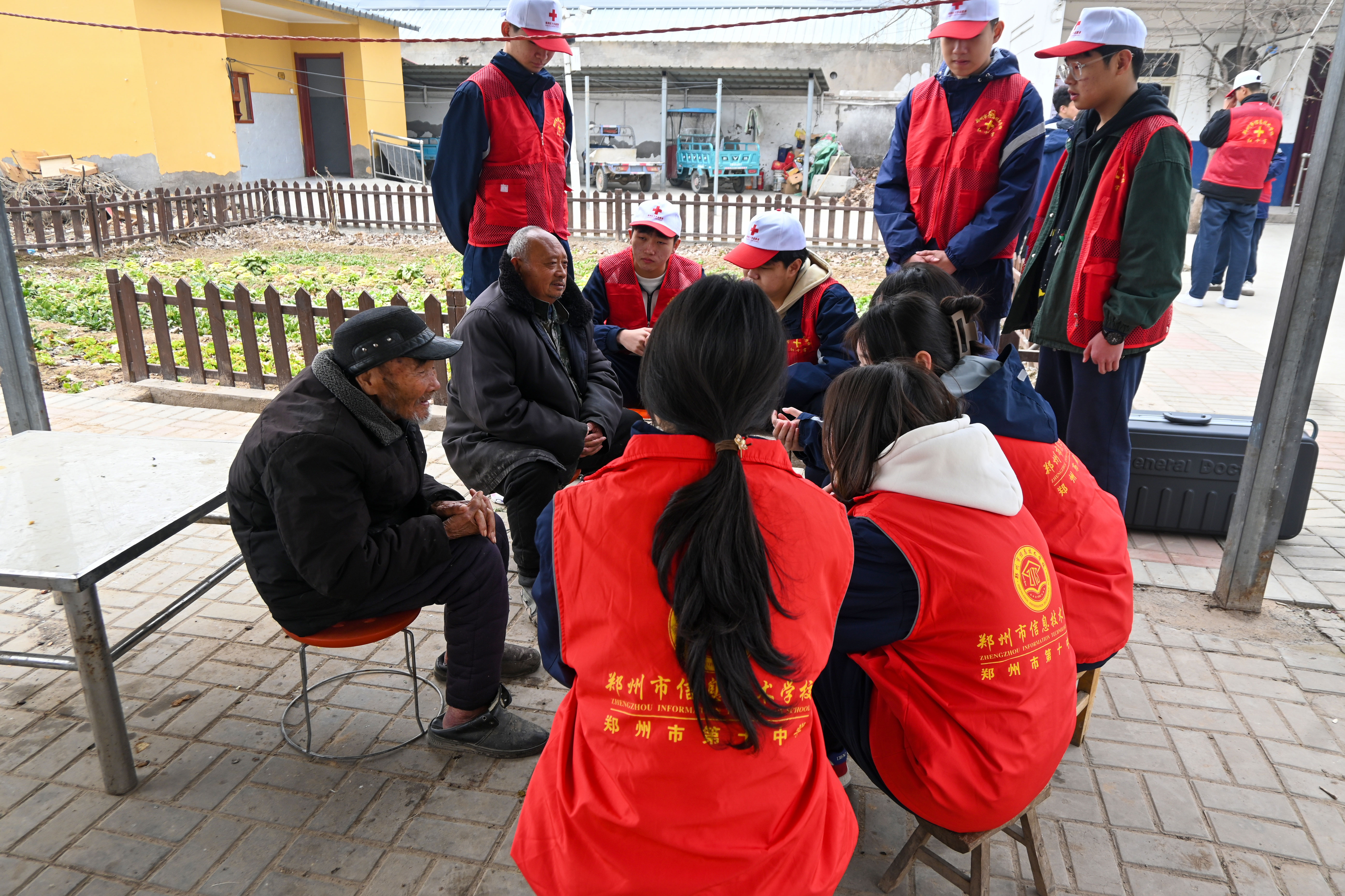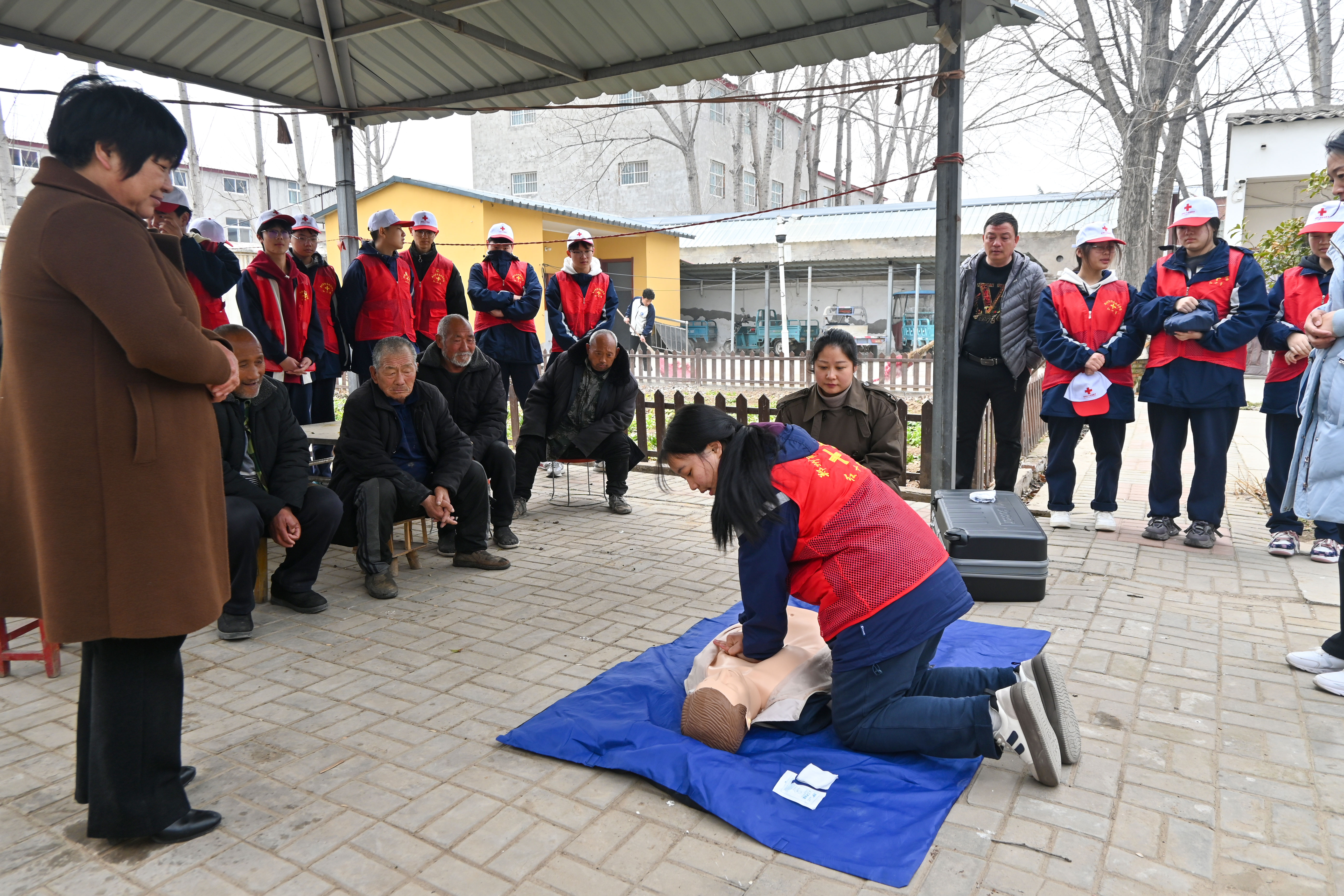 红十字社团指导老师周慧敏一边为老人们测量血压,一边向老人们普及春季养生知识。在了解到老人们对红十字社团十分感兴趣后,社团学生朱紫蒙主动向大家介绍起社团日常活动内容,并现场展示了心肺复苏的操作方法、注意事项和重要意义。一位八旬老人,颤颤巍巍地说道:“看到咱们的孩子们在学校里能学到这么有用的知识,我感到非常的欣慰。好好学习,国家的建设就靠你们了。”