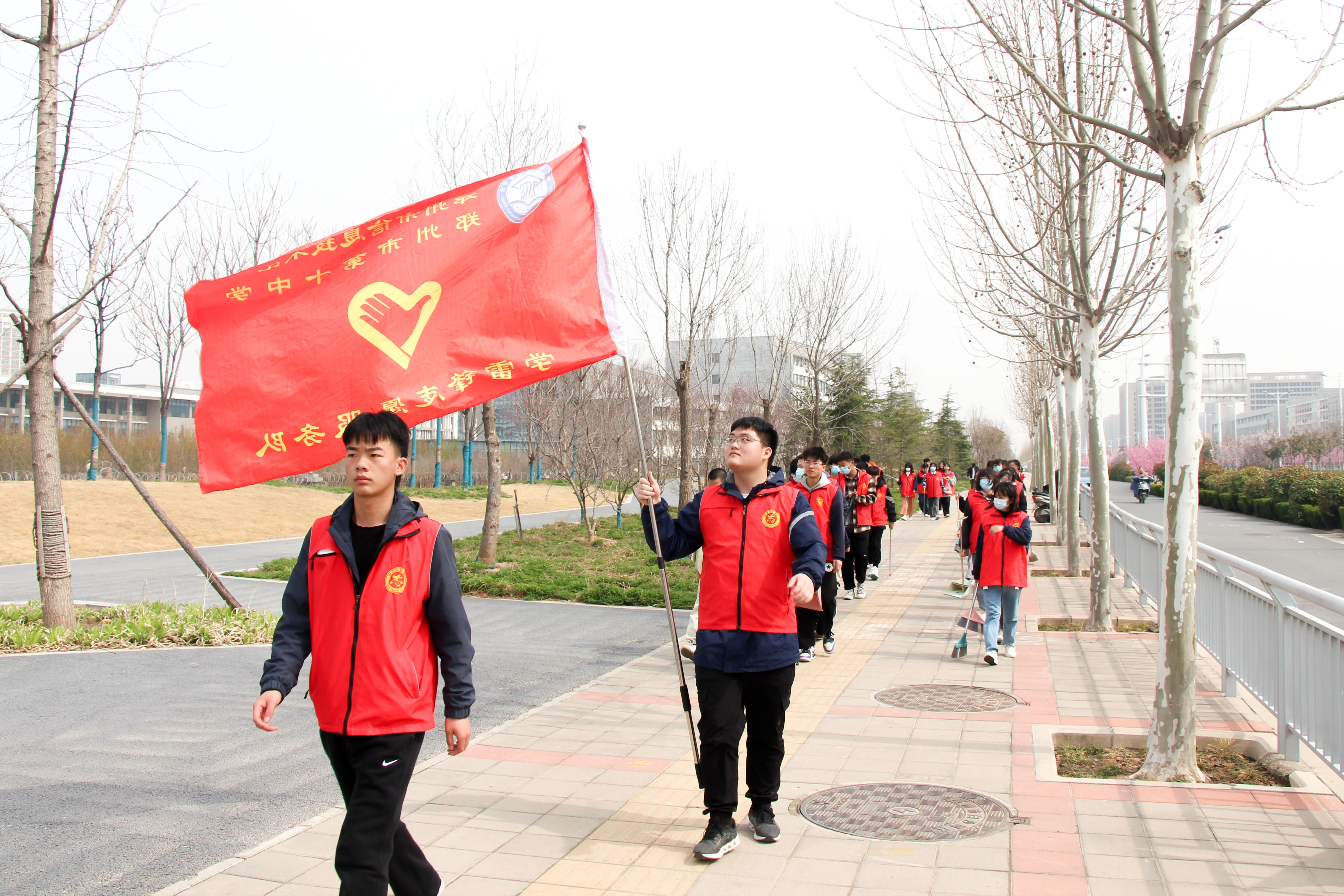 在校团委副书记李晓培的带领下,团员干部、入团积极分子和志愿者30余人携带扫把、抹布、铲刀等工具,有序前往宁馨苑小区。抵达社区后,学生们便自发地开始行动。有的学生认真捡拾和清扫绿化带里的落叶、塑料袋、烟头、烟盒等垃圾;有的学生清理墙面上随意粘贴的小广告,还利用捡拾到的矿泉水瓶盛水,以打湿墙面的办法,力图抹去小广告的“痕迹”;还有的同学看到楼道被些许杂物侵占,便三五人合力将杂物摆放整齐,留出宽敞、干净的通道······经过一个多小时的清理,小区道路两侧绿化带内的垃圾全部被清理干净,路面上也找不到一丝垃圾的痕迹,道路上干干净净,墙面上也是洁净如新,受到社区居民们的赞许。