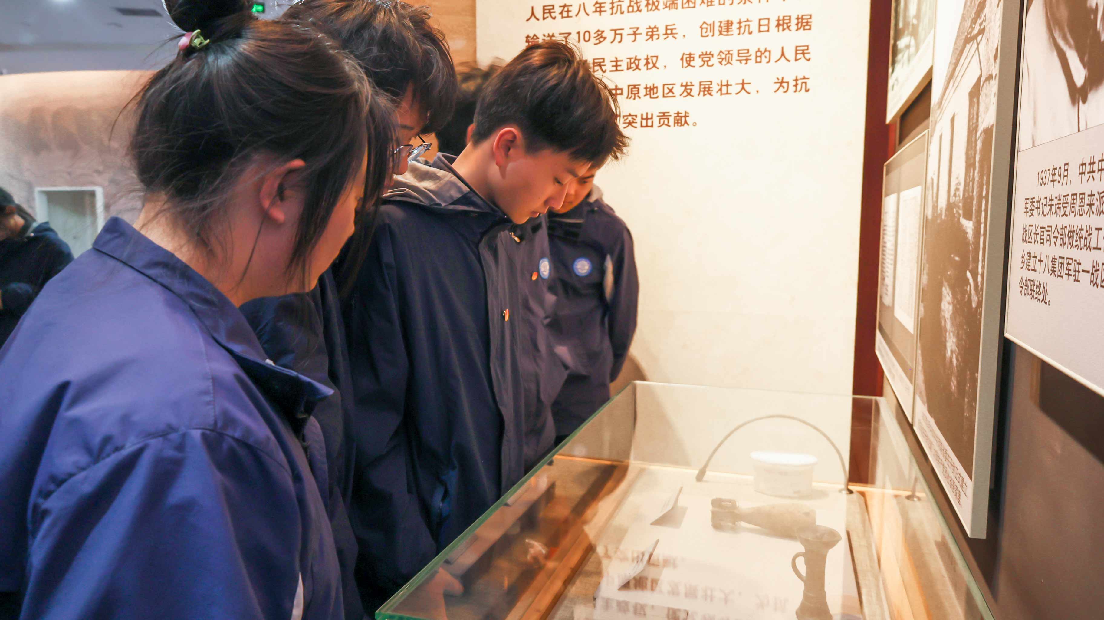 在中原英烈馆,同学们缓行在展厅内,一张张照片、一段段事迹、一尊尊塑像如同打开了厚重的历史卷轴,将那波澜壮阔的岁月一一呈现于学生的眼前。“此次祭扫活动让我对‘烈士’这个词语有了更深刻的体会,此次活动更加让我明白现如今美好生活的来之不易。作为一名新时代的团员学生,我们应该自觉继承先烈们的遗志,把对党和祖国的无限热爱转化到实际学习和生活当中,用自己的行动致敬先烈。”学生田浩琪看着浮雕中那些扛着红旗的先辈们激动地说道。