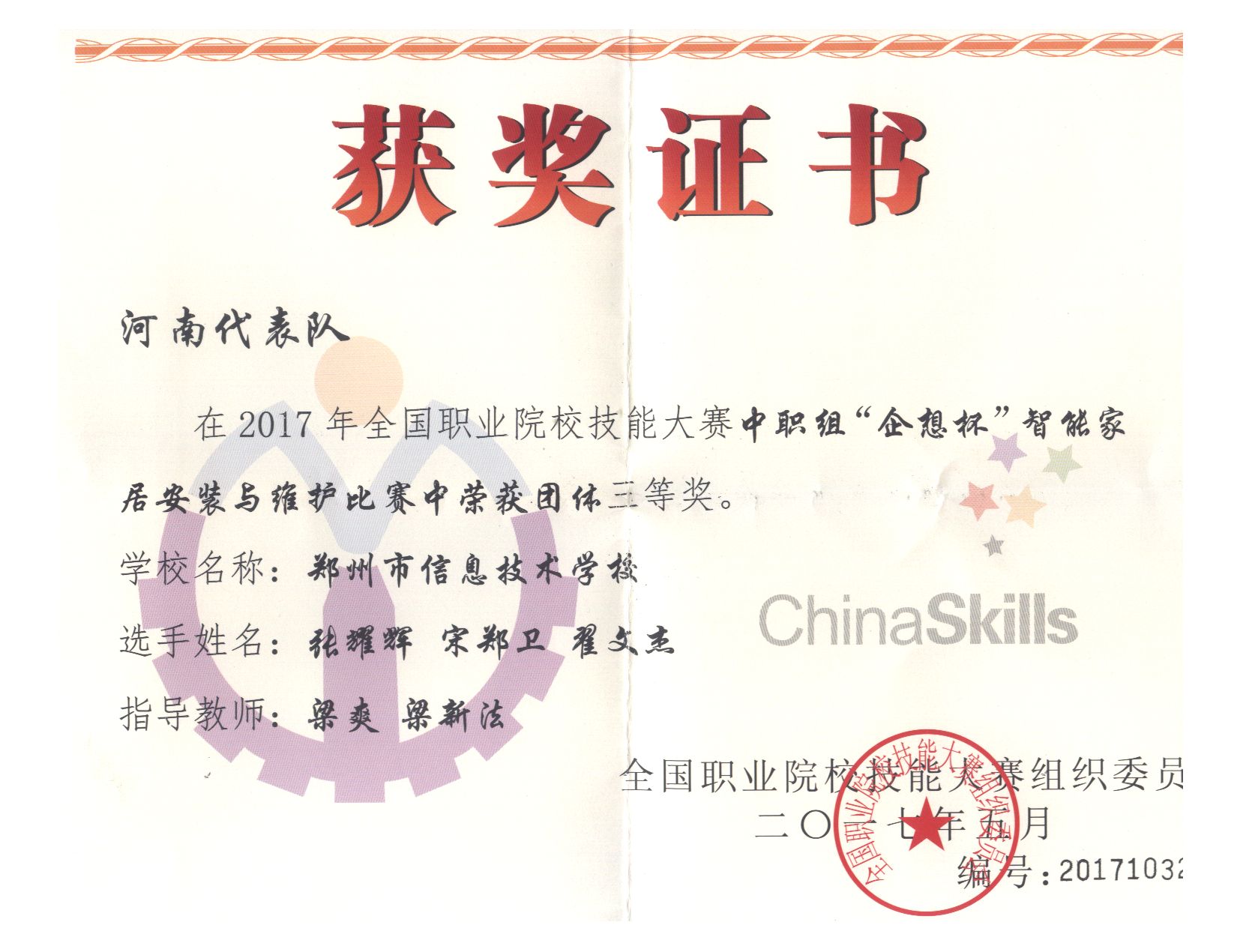 获奖学生:翟文杰、张耀辉、宋郑卫
