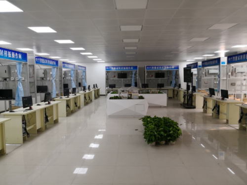 我校拥有总面积达4300平方米的校内实训基地。根据我校专业群,规划了工业机器人类、计算机应用类、数字媒体类、物联网应用类、电子类实训室共20余个,并预留了600平方的智能制造类实训室用房。学校实训室均采用高标准、高规格,在河南省中等职业学校信息技术类实训基地中处于领先地位。学校拥有48个多媒体教室,每个教室均配备了互动式白板,教师利用信息化手段进行教学的比例达100%。学校网络主干网千兆,百兆到桌面,每位教师均配备的电脑,实现电子化备课。整个校园全部无线覆盖。
