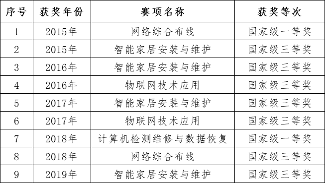 计算机应用专业学生2015-2019年国赛获奖情况一览表