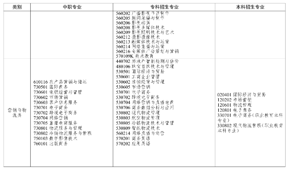 2. 河南省2026年对口招收中等职业学校毕业生进入普通高等学校学习专业对照表