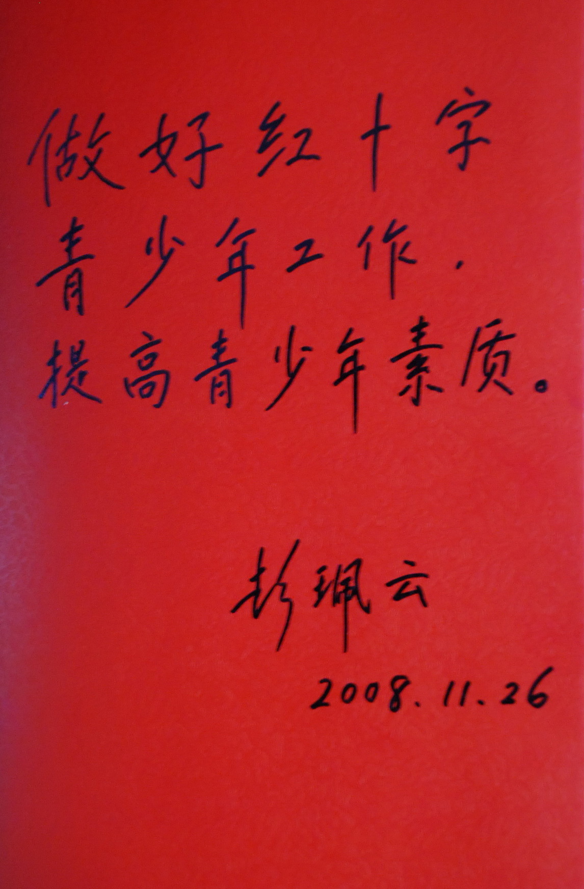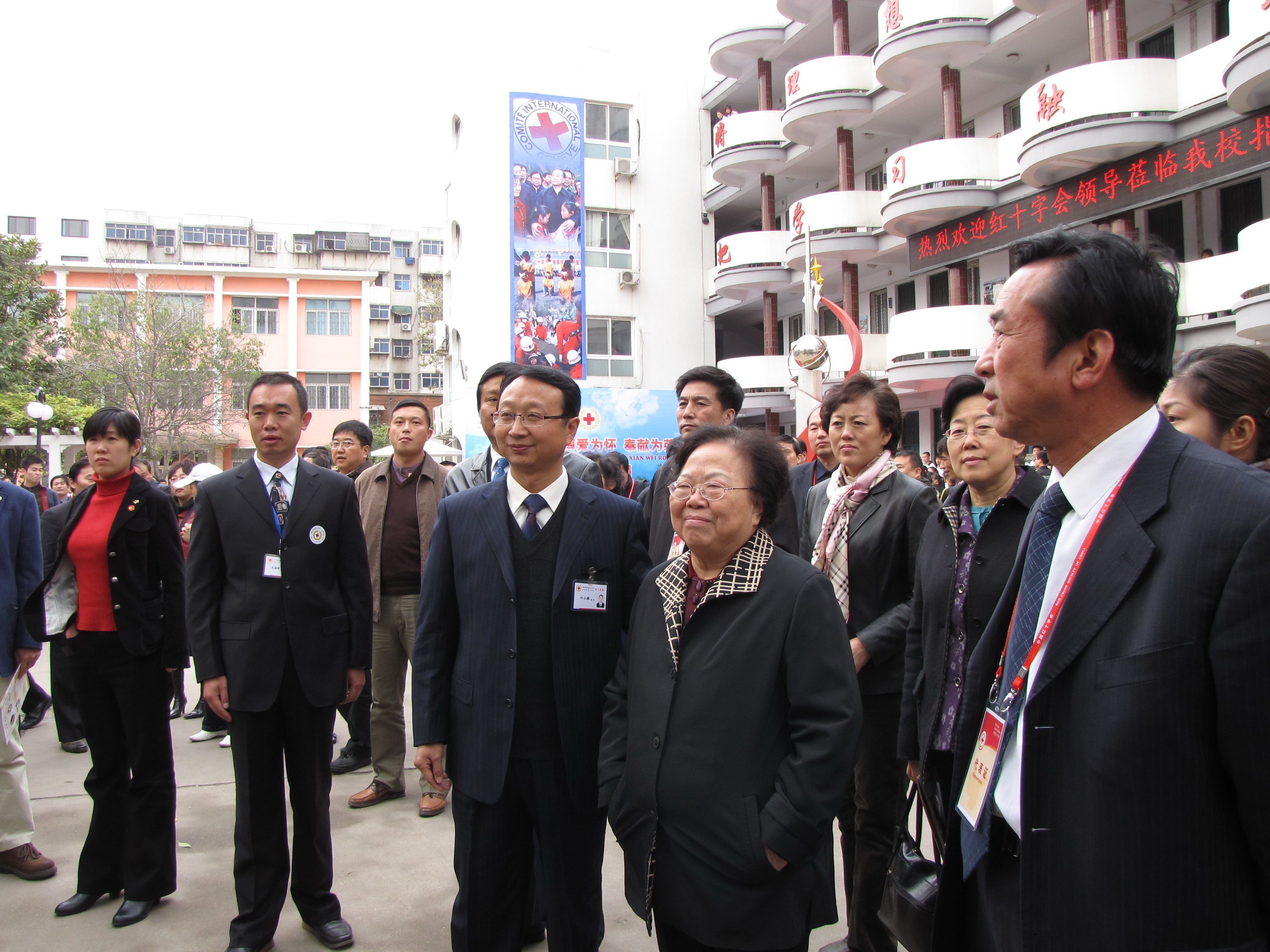 彭珮云视察学校并题字