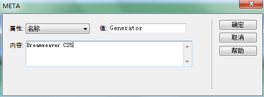 (4)如果希望设置网页编辑器的说明,在“值”文本框中输入Generator,在“内容”文本框中输入所用的网页编辑器,如图3-6所示。