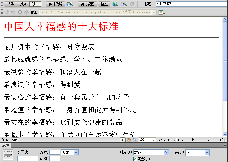 (2)选择“插入”→“HTML”→“水平线”命令,效果如图3-22所示。