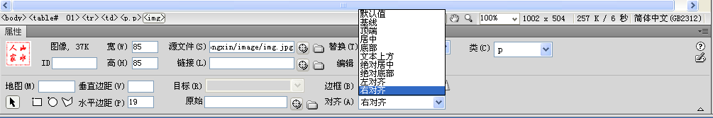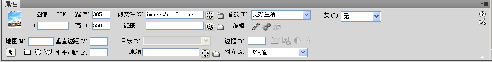 (3)设置图像属性:插入图像后,在“属性”面板中显示该图像的属性。
