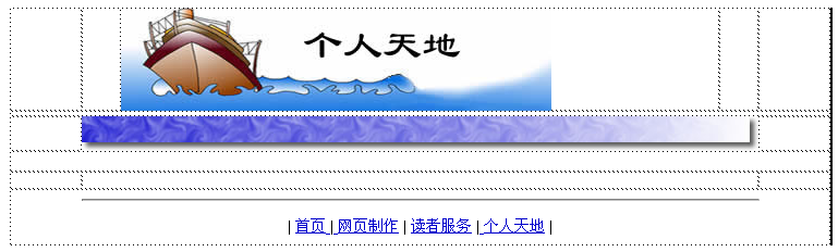 步骤8:在水平线下方,输入导航栏文字“| 首页 | 网页制作 | 读者服务 | 个人天地 |”,并分别为导航栏文字做超链接,将合并后的单元格行高设为“52”,水平居中,垂直居中。做到这一步的效果如图6.35所示。