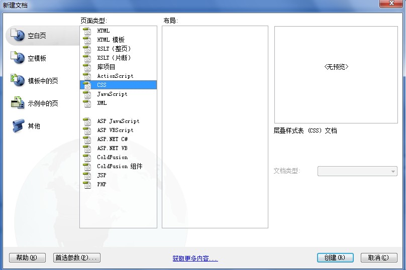 CSS样式可以定义许多类型的样式,例如:文本样式,区块样式,边框样式等等,定义这些样式都有相应的对话框。
