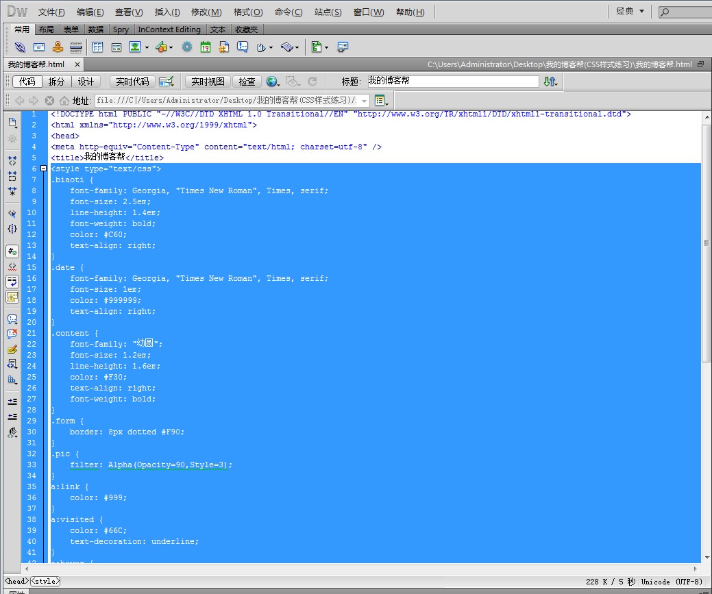 演示案例1:页面中使用CSS样式表—我的博客帮