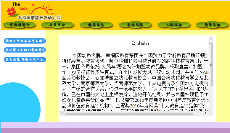 【需求分析】:框架是由框架页面和框架集组成。框架页面是由一组普通的Web页面组成的页面集合,通常在一个框架页面集中,将一些导航性的内容放在一个页面中,而将另一些需要变化的内容放在另一个页面中。